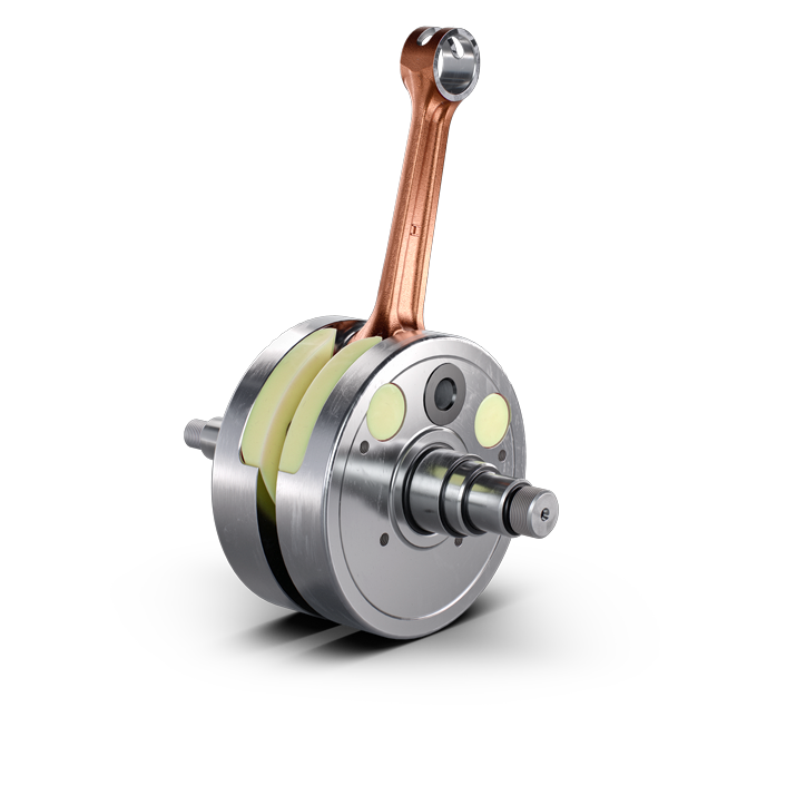 The crankshaft is designed with weight reduction in mind to increase throttle response. The perfect balance of rotating masses is achieved by balancing the weights of the crankshaft flywheel, the rotor, and the counter balancer shaft.
